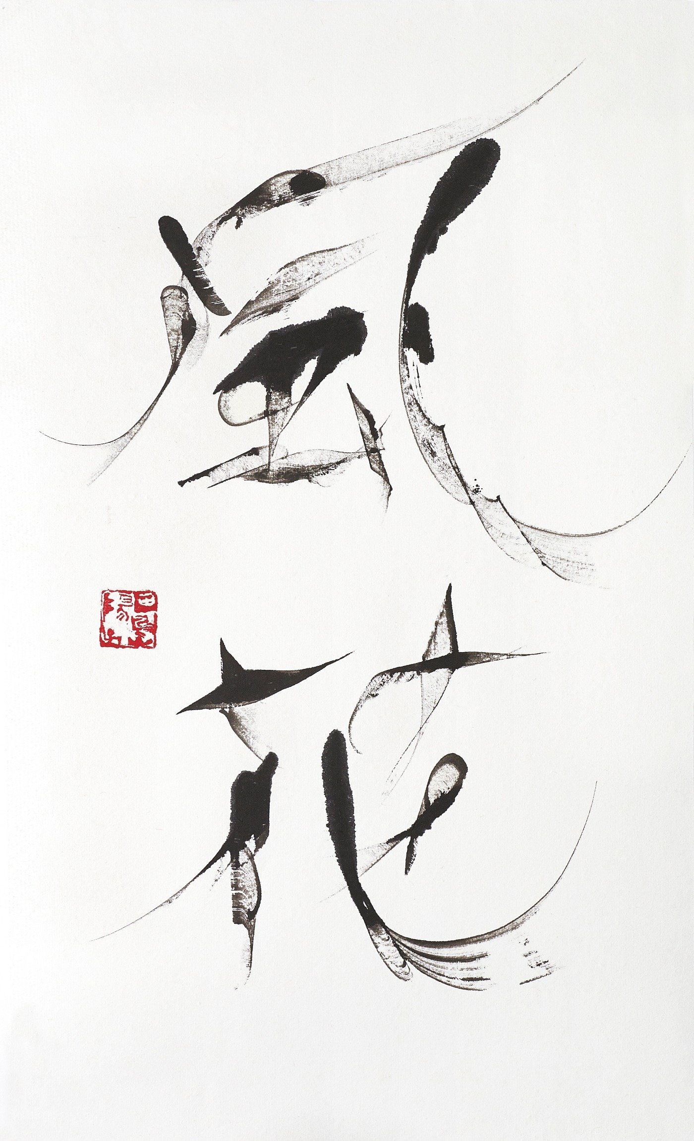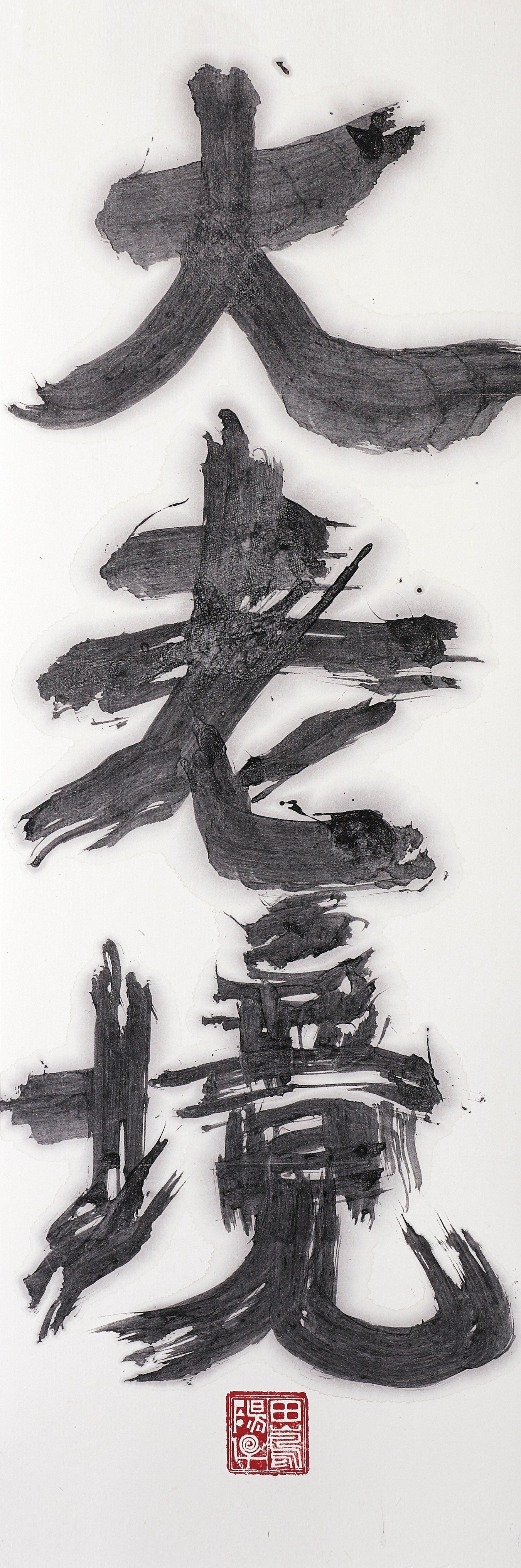 田嶋さんは、日頃の稼業に三足も四足もの鞋を履いている。まともに字を書く時間がないのは当たり前だ。欲張りなのである。書というのは、単にうまい字を書く巷の書道がある。先生や団体のコピースタイルだから、年数さえかければ誰でもどうにか格好はつくものだ。ところが田嶋さんが食いついた創作ポリシーはそのような書道ではなく、我々が標榜する、メッセージを込めた個の自由表現という簡単そうでいちばん難しい書の世界だった。そうなるともっと内省や内観、想像力の練磨や鍛練の持続を必要とする。しかし、そういう忙しい生活状況のなかで普通の書道ではなく、個の書を書こうなどとは無謀無茶な話である。その無茶ぶりに付き合わされるこちらはたまったものではないが、おそらく甘え上手に生きてきた百戦錬磨の恐竜にも似た田嶋陽子という生きものの前にはいつの間にか手を貸すことになってしまっている。どうにも苦笑である。