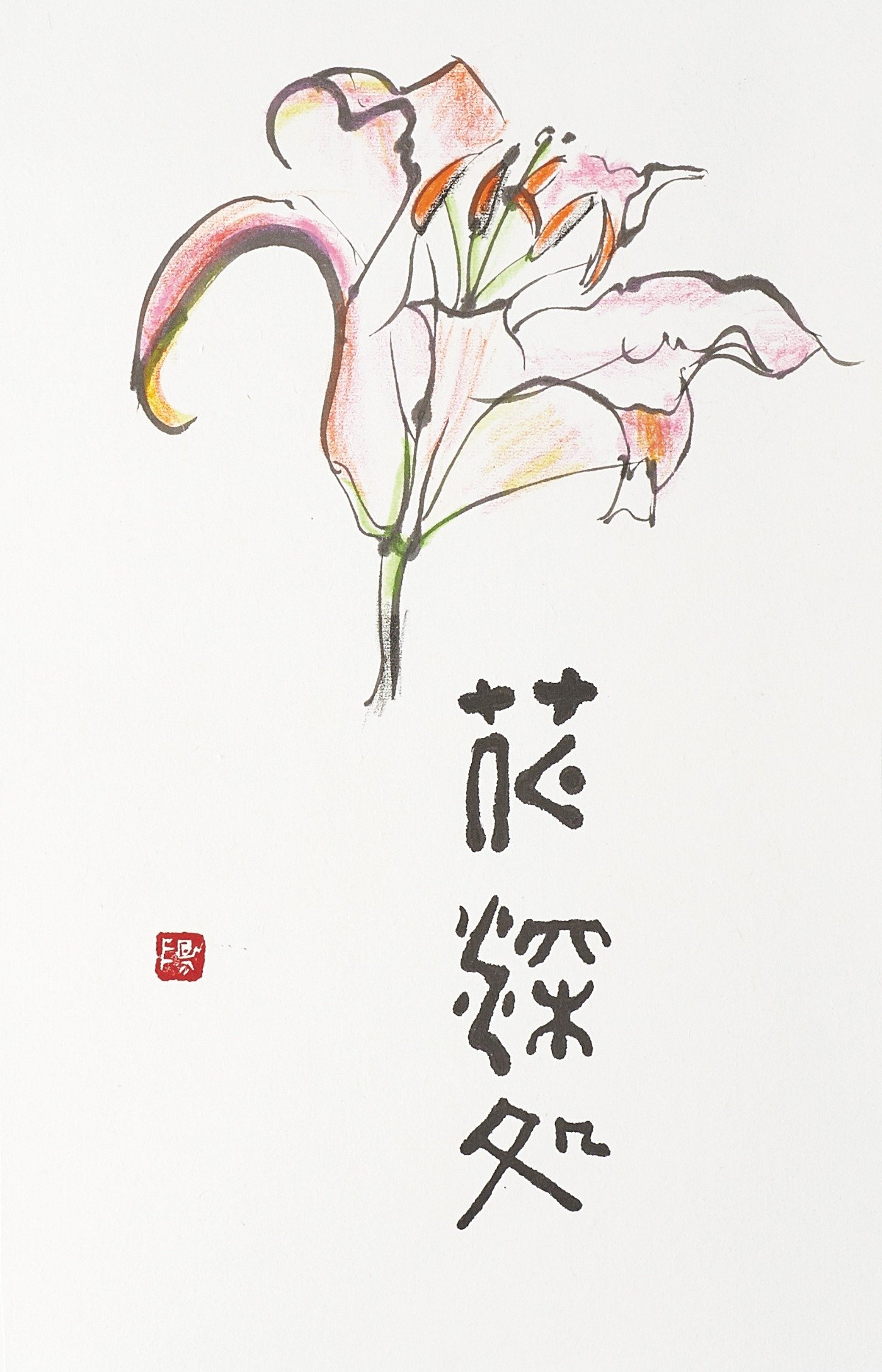 私見で言うと、絵がいい。ハッとするような絵がたくさんある。三振もあるが、田嶋さんのどこにこんなしみじみとした世界が潜んでいるのだろうか、と不思議に思うことがしばしばある。第一回めの個展から内心の驚きを隠せないでいる。今回も絵に書を入れた書画作品をなるべく多く出品することをすすめた。それが知られざる田嶋陽子という人の深いところに宿るもう一つの心の貌だと思うからである。